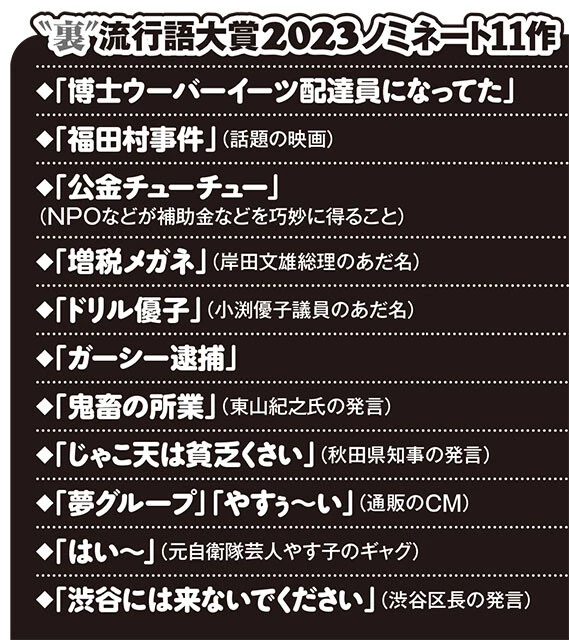 ――では、そろそろ、裏流行語大賞を決めていきたいと思います。まずはノミネート作からお願いします。