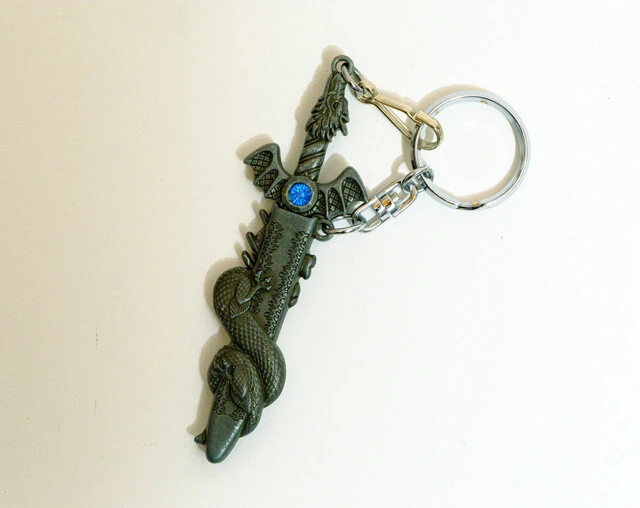 剣に龍が巻きついている立体的でメタリックなキーホルダーが主流で、最もメジャーなのはコヤマ製の「魔界のドラゴン夜光剣」とネーミングされたものです。人気のあまり多様な亜種が生まれ、類似品に対する訴訟にまで発展したほどです。