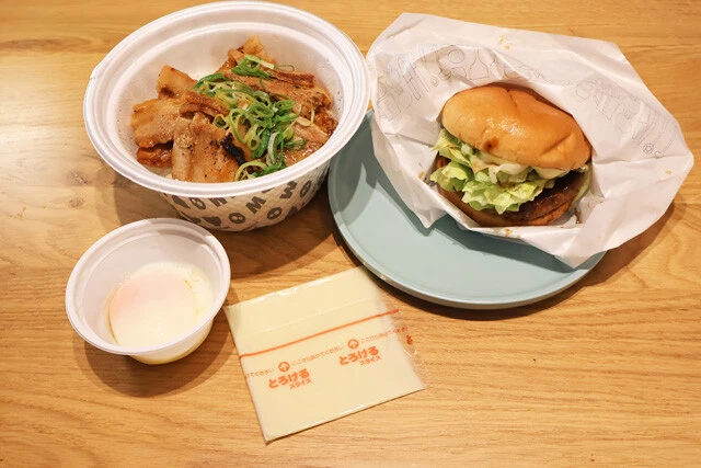野島 そこで今回はゴジラバーガーより攻撃的で肉々しいバーガーを作るぞ! ってことで、モスのテリヤキバーガーを調達してきました。これを解体し、パティの上にチーズをのせてレンチンで軽くとろけさせます。