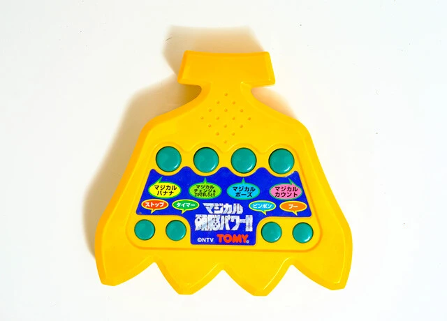 そんなときに、番組と同じリズムが再生できる玩具が発売されました。形はバナナですが、マジカルバナナ以外のゲームの音も入っています。好評だったのか、バナナが4本で房になった改良版が発売されたほどです。