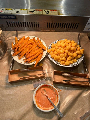 そして気になる料理の補充だが、女性スタッフがホールの空席の様子や料理の状況を絶えずチェックして、なくなれば、すかさず奥から男性スタッフが山盛りの食品を追加していく。オペレーションもしっかりしていた。