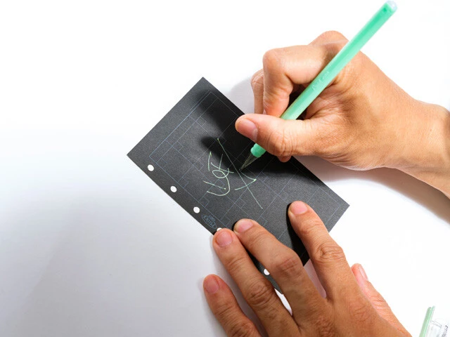 黒い紙に書けることが特徴で、業界初となる不透明なパステルカラーゲルインキを採用することで実現しました。これにより黒い紙にネオンのように目立つ文字や絵を手軽に描けるようになったのです。