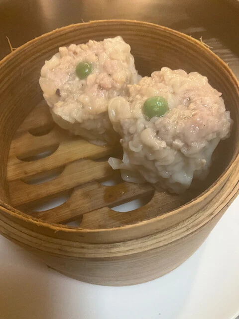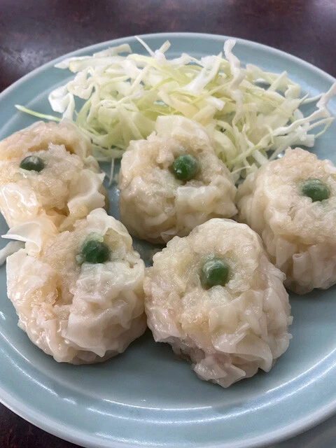 崎陽軒の「昔ながらのシウマイ」。グリンピースは使われているが、あのシンボル的な使われ方はしておらず、中身のあんに練り込んでいる。写真は台湾の崎陽軒のシウマイ