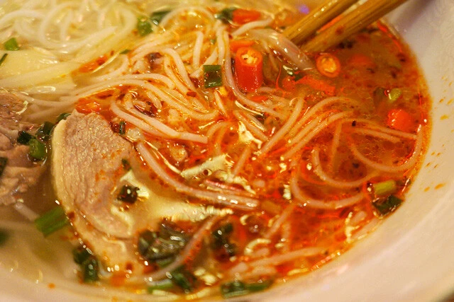 そしてブン。見た目は透明感のある、ちょっと太めのそうめんのような感じ。ぷりぷりつるつるの食感で、米粉から作られたというその味わいには究極に雑味がなく、これが癒しスープととても合う。ベトナムでは米やフォーに次いでメジャーな主食だそうだけど、確かにそれもうなづける。毎日でも食べられる。うまいな、ブン。