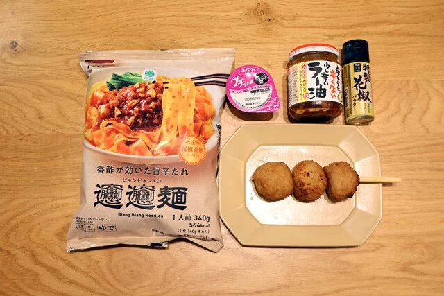 野島 あとはレンチンしたビャンビャン麺にスープをぶっかけ、ひき肉に戻した鶏つくねと、お好みで食べるラー油や花椒を加えて完成。さあ食べてみて!