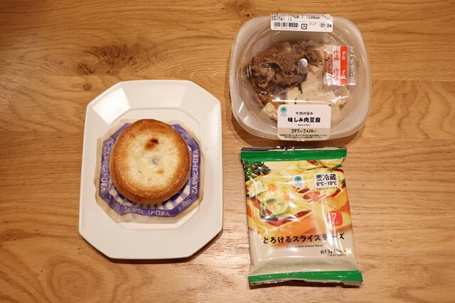 助手 ぬおっ、これウマッ! 肉の甘じょっぱい味と焦がしチーズがめちゃくちゃ合ってるし、豆腐でボリューム感が出てるのもイイ! 全然アリ!