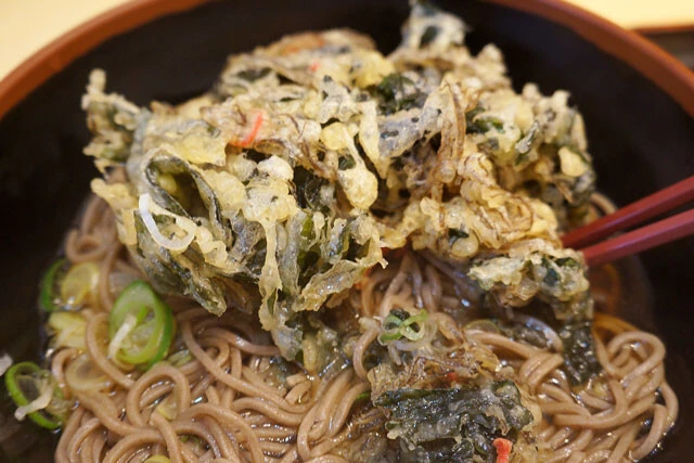 大きめのどんぶりに、シンプルなそばとかき揚げ。立ち上る湯気を吸い込むと、日本人たるDNAを根底から揺さぶられるような、あまりにも魅惑的な香りが鼻から脳へと抜けてゆく。