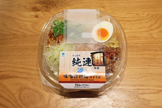 さっぽろ純連監修 冷し味噌担担麺(まぜそば) ファミリーマート:598円 味噌と担々麺の中間のような味わい。味噌とごまのコク深さの後にピリ辛感や花椒の香りが追走。肉そぼろが麺によく絡むのもうれしい