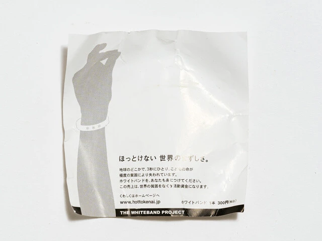 その翌年、グローバルな貧困根絶キャンペーンのひとつとしてホワイトバンドプロジェクトが始動。リストバンドなど、白いものを腕に着けて「貧困の撲滅を優先課題にしてほしいという意思を示す」というテーマがありました。