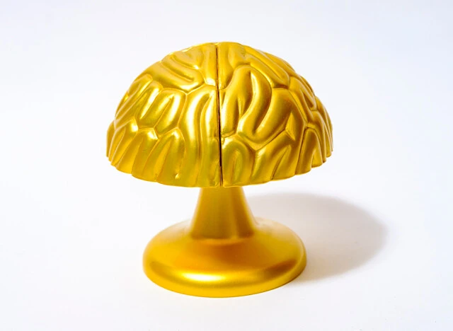 インスパイア系の金の脳型オブジェ。メロンパン入れになっている