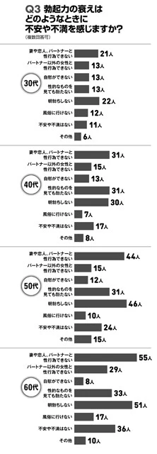 30代でも3人に1人が衰えを感じていた! そして、30代、40代では4人に1人がED治療薬を飲んだことがあると判明!