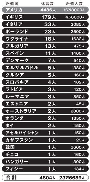 「イラク攻撃での各国兵士の死者数と派遣人数」http://wpb.shueisha.co.jp/2014/06/10/31380/images/2