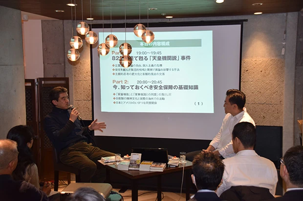 紛争史研究家の山崎雅弘氏(右)と、自衛隊問題に詳しいジャーナリストの布施祐仁氏(左)1935年に起きた天皇機関説事件をご存じだろうか。おそらく、歴史の年表のひとつとしてしか覚えていないという人も多いだろう。しかし、その内容を見ていくと、現在の状況と驚くほど似通っていることに気づく。
