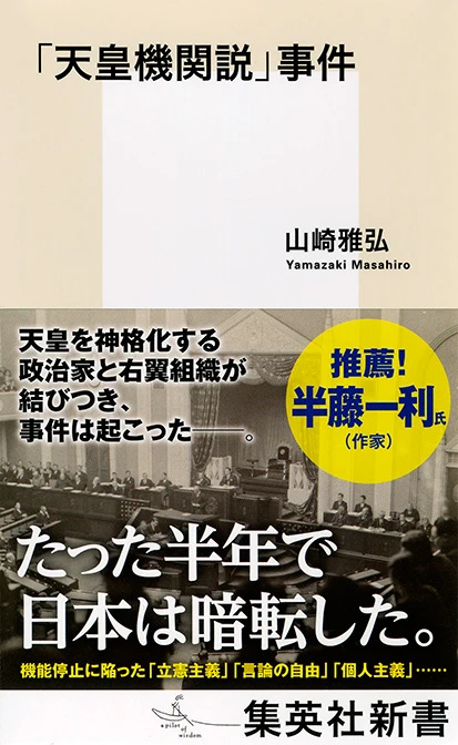 山崎 私も同感です。まず天皇機関説事件の当時の様子から見ていきたいと思いますが、前置きしておくと、「天皇機関説」とは、日本という国家を「法人」とみなし、天皇はその法人に属する「最高機関」に位置するという学説です。これについて右派の政治家や退役軍人、そして右翼団体などが「天皇を『機関』扱いするのはとんでもない」と、表面的な言葉をあげつらって言いがかりをつけ、この学説を主張する憲法学者で貴族院議員の美濃部達吉を糾弾したのです。