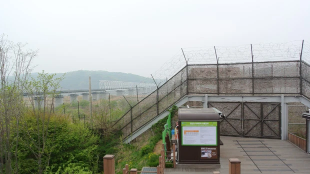 臨津江の対岸に北朝鮮の集落が望める烏頭山統一展望台。