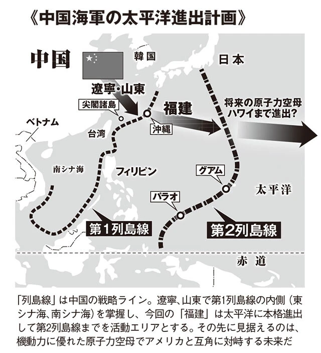 「『福建』は尖閣(せんかく)諸島がどうこうというスケールではなく、西太平洋の第2列島線までの日本の排他的経済水域(EEZ)を確実に脅かす存在となります」