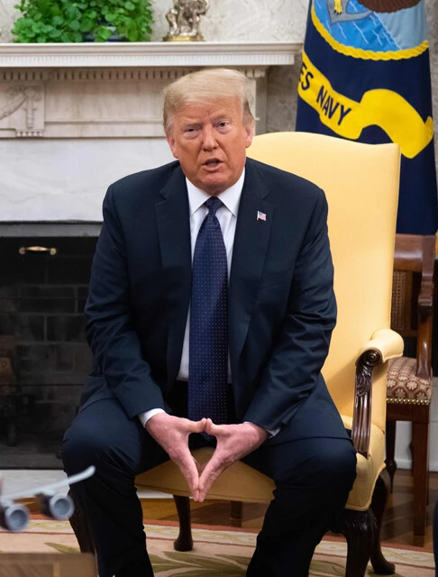 トランプを信奉していると公言するミレイ。公式な会談の場での手の置きどころや形まで完コピしている