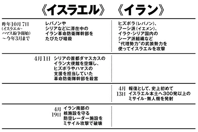 4月13日、イランは初めてイスラエル本土に対し攻撃を行なった。これまでもイスラエル側はイラン国内外での暗殺・破壊工作、イラン側は国外の代理勢力による攻撃を仕掛けており、長年〝影の戦争〟状態にあった両国だが、ついに行なわれた直接攻撃の規模は、中距離弾道ミサイル、巡航ミサイル、自爆ドローン合わせて300発以上に及んだ。