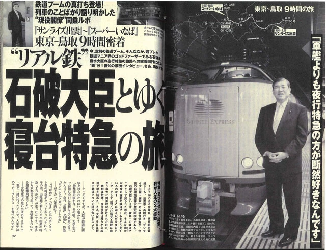 今、空前の鉄道ブーム、そんななか、週プレが鉄道マニア界のゴッドファーザーである石破茂農水大臣の夜行特急の旅路への密着同行に成功。"鉄"分1億%の濃密インタビュー、さあ出発です。