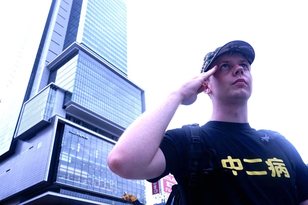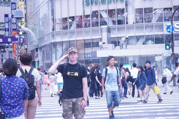 JR渋谷駅前のスクランブル交差点でポーズを決める中二病患者。