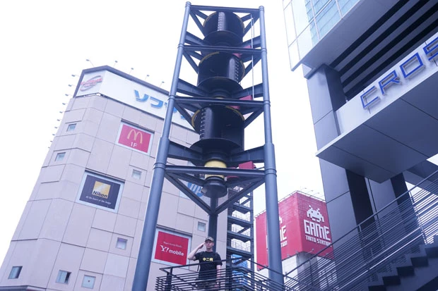 同地には“サボニウス型”と呼ばれる縦軸回転型風車が3基装備されている。この施設自体で生み出される電力量はごくわずかで、風車の羽についているライトの発光に使用される程度。そもそも、この装置のコンセプトは「この地に流れる様々なエネルギーを呼び寄せ交流を生み出す“文化的発電装置(Cultural Generator)”を象徴するもの」(看板の説明より)。こうした試みも、実に秋葉原らしい発想でステキである。