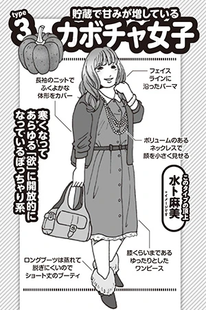 もうひとつ、多いタイプが、寒くなってあらゆる「欲」に開放的になっているぽっちゃり系「カボチャ女子」だ。