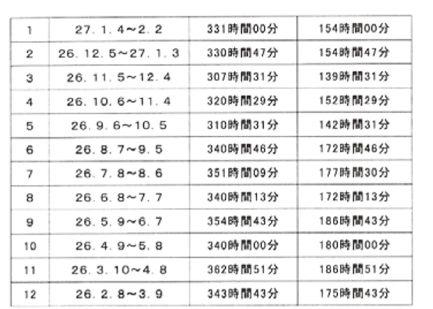 Aさんは12年12月に入社。パン製造や発注、接客などは本人の性に合っていたが、過労死レベルで働いていた。14年の記録だけでも、最短の残業時間は11月の約139時間、最長が3月の約187時間。入社前の10年に結婚し、子供ももうけ、いつかは店長にとの夢を抱きながらも、あまりの長時間労働に、妻には何度も「疲れた」と漏らし、入社時の体重70kgは53kgにまで落ちていた。