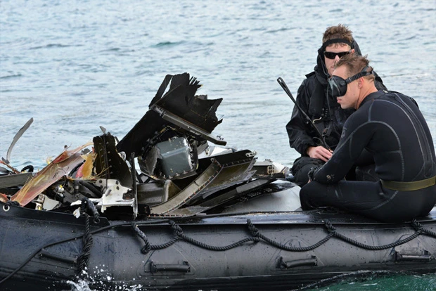 墜落の翌々日、周辺海域で大破したオスプレイの残骸を回収する米兵たち。散り散りになった破片を目にした近隣の住民は「オスプレイはまるでハリボテみたいだね。墜落したらゴミと見分けがつかないよ」と話した