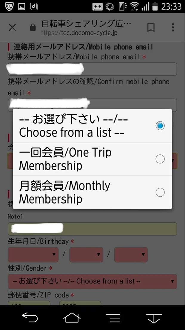 1日パスは現金かSuicaやPASMOなどの交通系ICカードでの決済が可能だが、他ふたつはクレジットカードかドコモのケータイ払いだ。というのも、ふたつの会員登録は全てオンライン。そこで早速、週プレNEWS編集部のある千代田区コミュニティサイクル『ちよくる』に登録した。