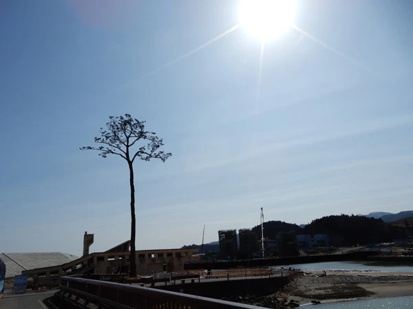 すでに日は暮れ、周囲には漆黒の闇が広がる。以前はたくさんの人家に明かりが灯(とも)っていたはずと思うと胸が締めつけられる。やがて、ボンヤリとライトアップの明かりが見えてきた。まるで慰霊塔のように空に向かって細い枝を伸ばした“奇跡の一本松”だ。