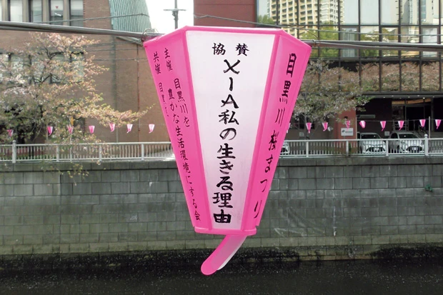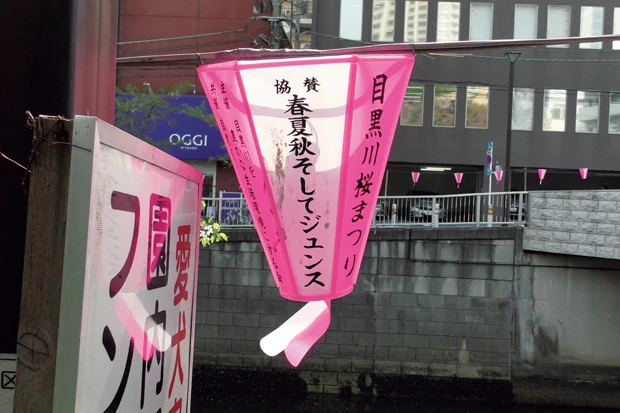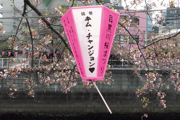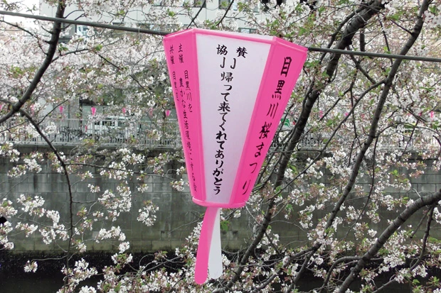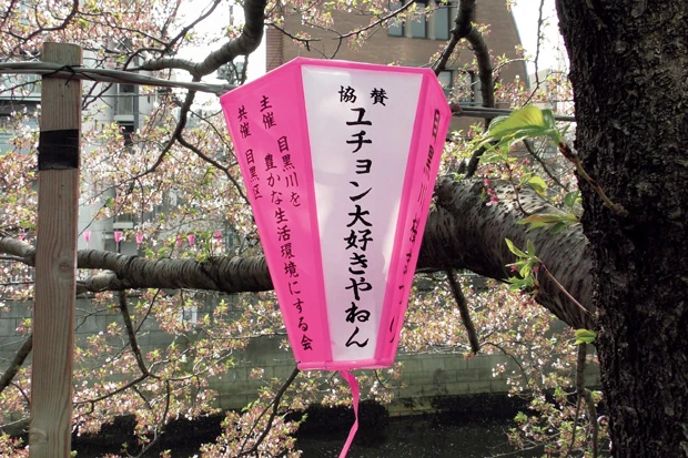韓流スターへのメッセージぼんぼりが集中する目黒川