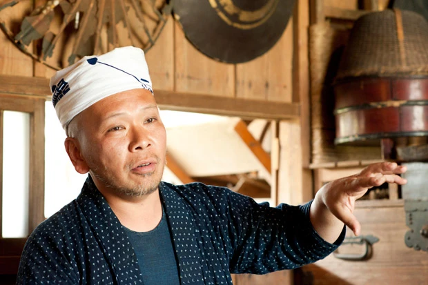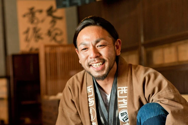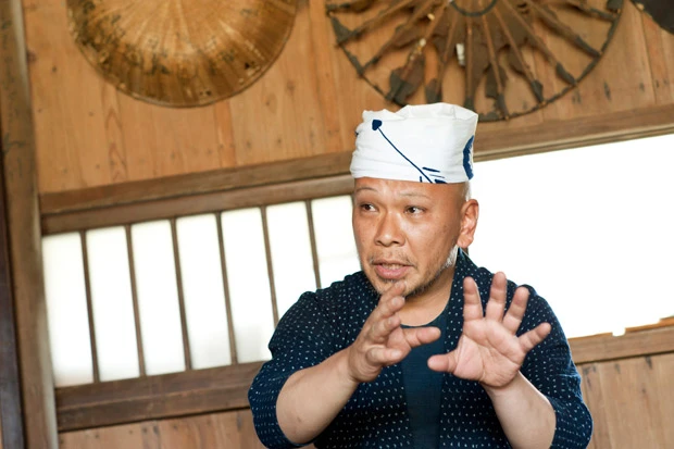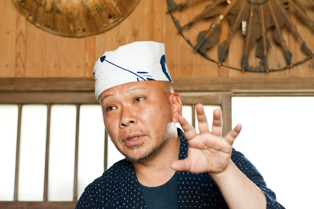 隊員は野良着にそろいの半纏姿。切腹ピストルズの"普段着"でもあるのだが、そのいでたちに「衝撃を受けた」というのは荻原の幼馴染み、針谷(はりがい)伸一(34歳)だった。まだ若いが青年部部長を務め、手縫いで畳を作れる腕利きの畳職人である。