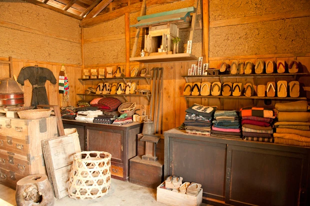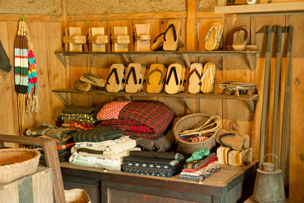部屋の隅には野良着や半纏、下駄、雪駄(せった)、年季の入った職人道具といった品々がズラリと展示されているが、荻原ら青年部の面々が蔵に眠る現代では価値のない古民具や古着を"救出"しては、ここに集結させていたのだった。