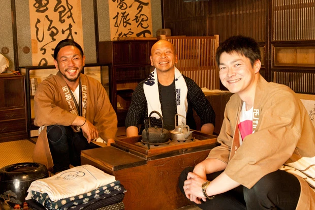 古民具や古着を「救出」する(左から)切腹ピストルズの隊長・飯田氏、大工の荻原氏、畳屋の針谷氏