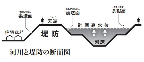 堤防は本来、洪水時に川が氾濫する危険が最も高くなると想定される水位(計画高水位)から一定の余裕(余裕高)を持たせた高さで設計される。千曲川の余裕高は1.5mとされていた。