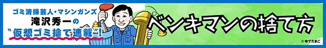 芸人コンビ「マシンガンズ」として活動するかたわら、日々「ゴミ清掃員」としても働く滝沢秀一が、ゴミの捨て方を指南する連載「ベンキマンの捨て方」。ただし、ここで扱うゴミたちは、架空のものばかり。あの漫画で出てきたあの道具や、映画で見たあんな機械など......。実在しない架空のゴミを、現実世界ではどう捨てればいいのか? 前代未聞の"ファンタジーゴミ連載"!
