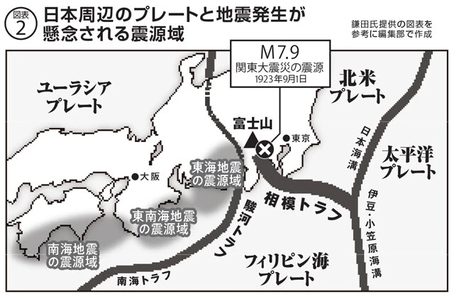 さらに恐ろしいのが、近い将来に起きるといわれている南海トラフ巨大地震と、それが富士山噴火を誘発するシナリオだ。鎌田教授が語る。