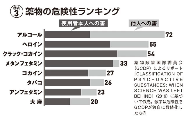 大麻の危険性は、コカインはおろかニコチンやアルコールより低いとする研究もある(図表3)。こうした面を踏まえて、日本の薬物政策を注視していく必要があるだろう。