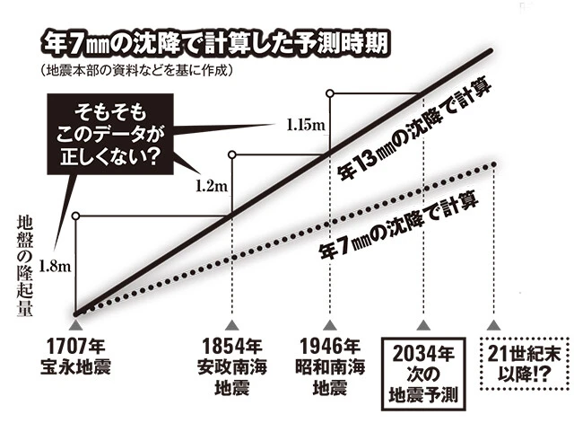 「2013年に、当時の京都大学防災研究所の橋本学教授(現・東京電機大学特任教授)が、時間予測モデルの矛盾を指摘していたんです。時間予測モデルは隆起した分だけ、沈降すると地震が発生するというモデルです。