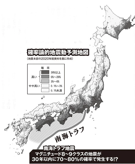 「地震本部は『全国地震動予測地図』を発表しています。そこには『今後30年以内に震度6弱以上の揺れに見舞われる確率』が色分けされています。そして、確率が非常に高い場所として南海トラフ沿いや首都圏などが示されています。