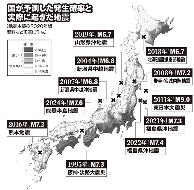 これは政府の「地震本部(地震調査研究推進本部)」が発表しているデータだ。しかし、この数字は科学的根拠に乏しく〝水増し〟されたものだという。