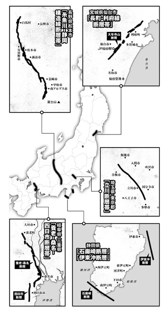 政府の地震調査研究推進本部(以下、地震本部)が今年1月に公表した、発生確率の高い「Sランク」と「Aランク」の活断層には大都市を通るものも多い。