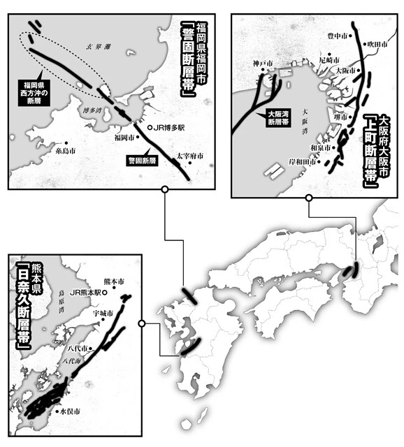 福岡市の人口は約167万人だ。警固断層帯南東部はSランクで、M7.2程度の地震が発生すると推定されている。九州にはもうひとつ心配される断層帯がある。それが熊本県の「日奈久断層帯」(Sランク)だ。