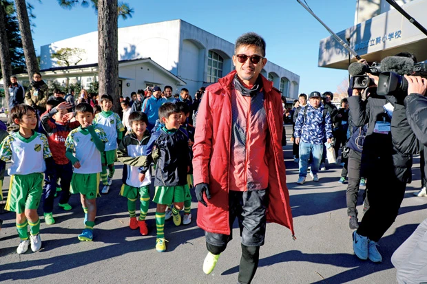 背番号「11」のビブスをつけてプレーしたカズは中学生相手でも「勝負にこだわった」と、今季“初ゴール”を含む4得点の活躍。この日はJ3鹿児島ユナイテッドで指揮を執る兄・泰年氏らと共に約60分、汗を流した