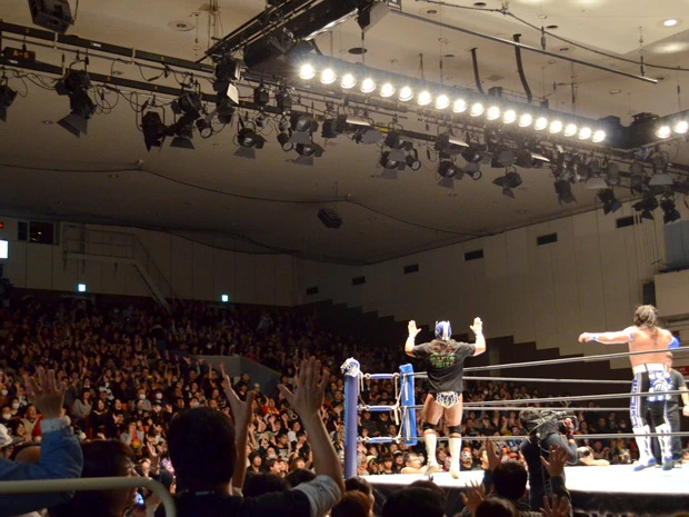 UG 試合はほとんど一緒だが、違うといえば観衆だね。メキシコと違ってかなり真剣に観戦する。自分の呼吸だけが聞こえるぐらい静かにね(笑)。メキシコでも重要な試合では観衆もシリアスになるが、普段はそれはもう賑(にぎ)やかに騒ぐからね! そんな感覚で来るものだから初来日の選手はやはり驚くようで、ラ・ソンブラなんかも「お客さんが静まり返ってたけど、何かマズいことした!?」なんて言っていたね(笑)。