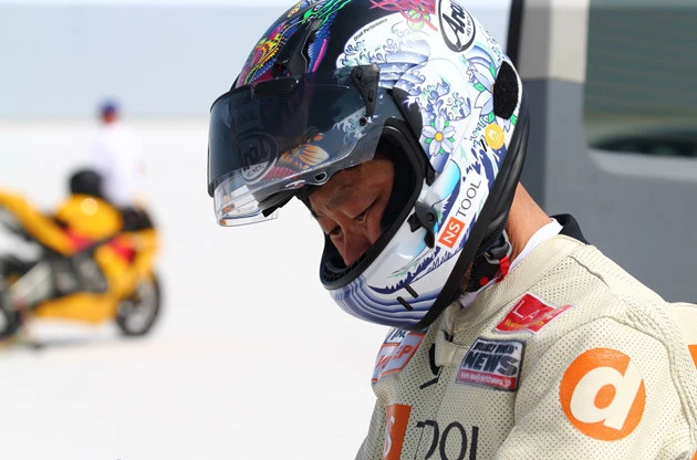 しかし、松村さんの言葉どおり現実は前途多難。ボンネビルの50cc世界最速記録は、2008年にアプリリアの2ストロークターボによって時速233キロまで更新されていた。信じ難い大記録だ。