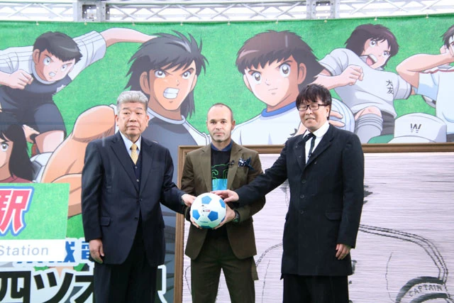 4日、「『キャプテン翼』特別装飾完成記念セレモニー」が葛飾区の京成線四ツ木駅で行なわれ、同サポーターに就任した元スペイン代表のアンドレス・イニエスタ(ヴィッセル神戸)と、原作者である漫画家の高橋陽一が出席した。