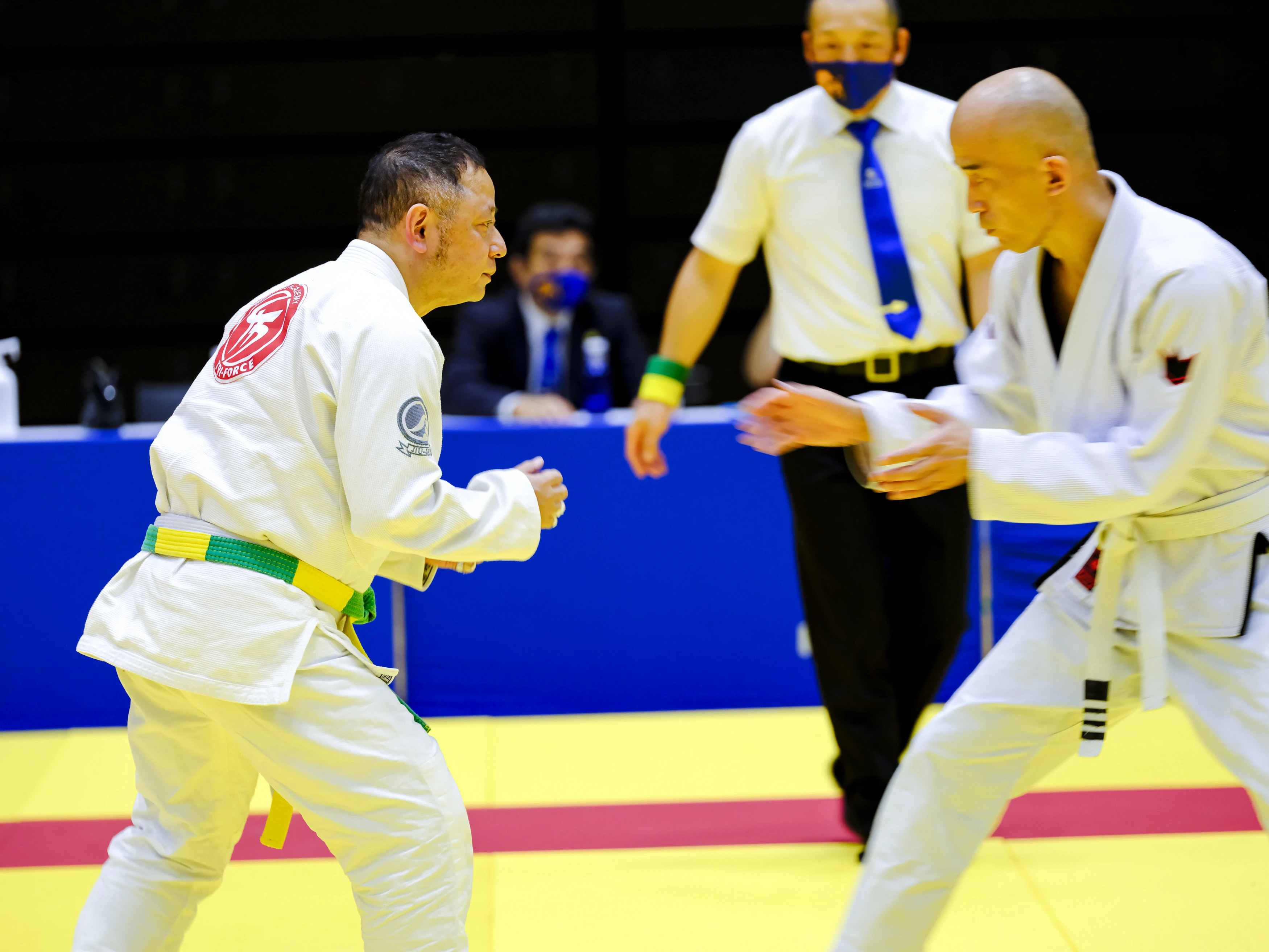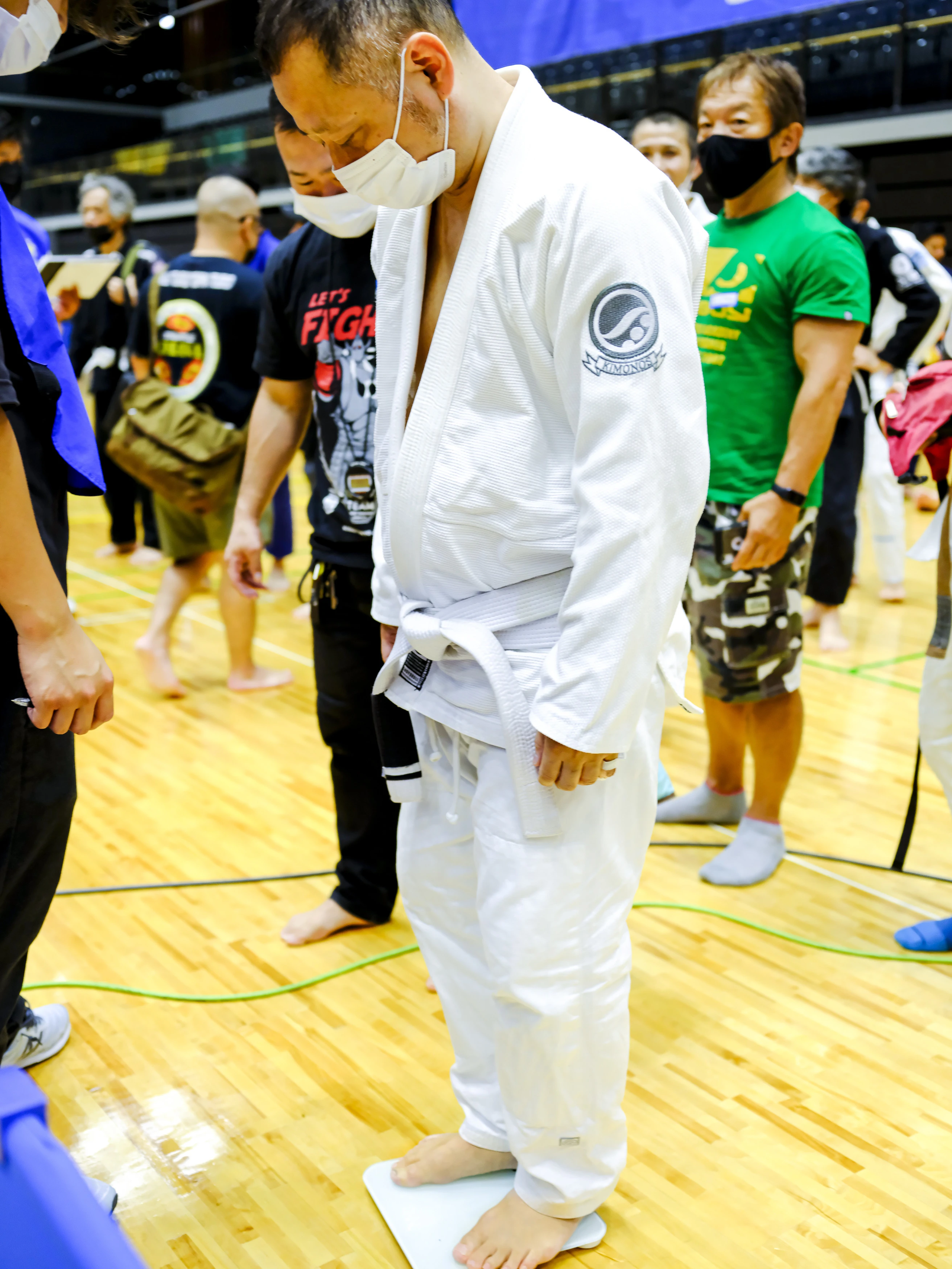 大会は帯の色と体重、年齢別にトーナメント戦で行われ、嶋田先生は「マスター5白帯ライト級」にエントリー。マスター5というカテゴリーは1970年以前生まれのエントリークラスで、60年生まれの嶋田先生は本来、65年以前生まれのマスター6だが、そのカテゴリーには他に出場選手がいなかったため、マスター5に入った。もちろん、マスター5では最年長の出場者だ。