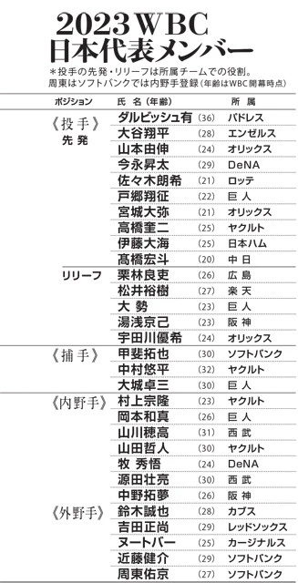 投手陣で最も背番号が若い11番のダルビッシュ有を皮切りに、投手15人、野手15人の名前を読み上げた栗山英樹監督。1月26日、ついに第5回WBC(ワールド・ベースボール・クラシック)に挑む日本代表メンバーが発表された。