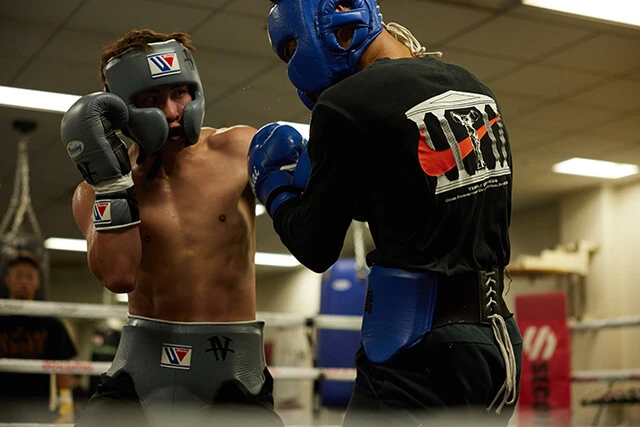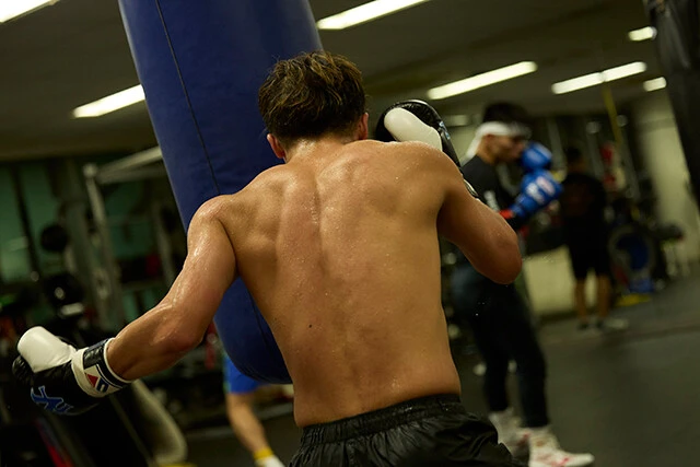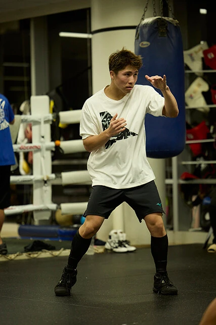 フルトン戦後のジム練習の様子。井上いわく、バンタム級からスーパーバンタム級への+1.8㎏が良い方向に働いている実感があるという